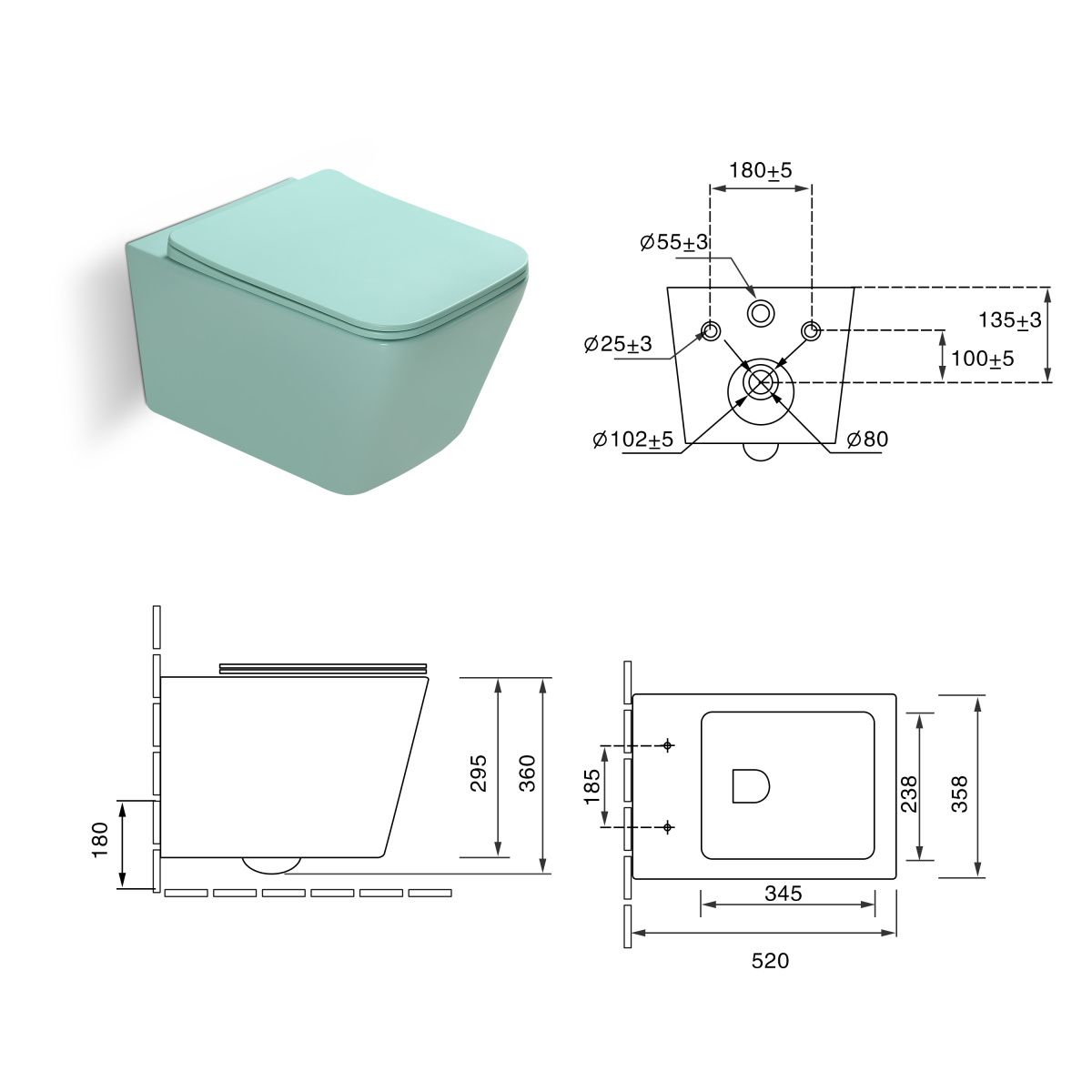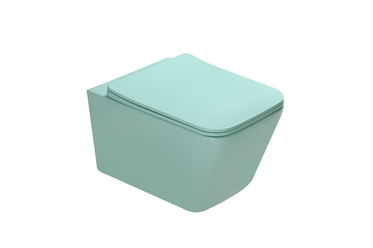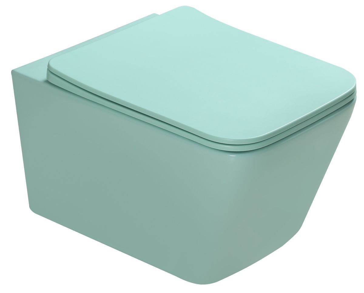 Унитаз подвесной SantiLine SL-5007LG цвет светло-зеленый с сиденьем микролифт безободковый смыв воронка-водоворот