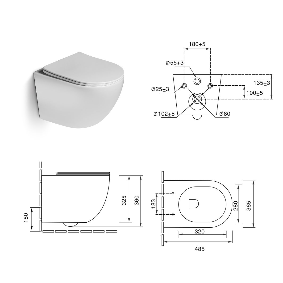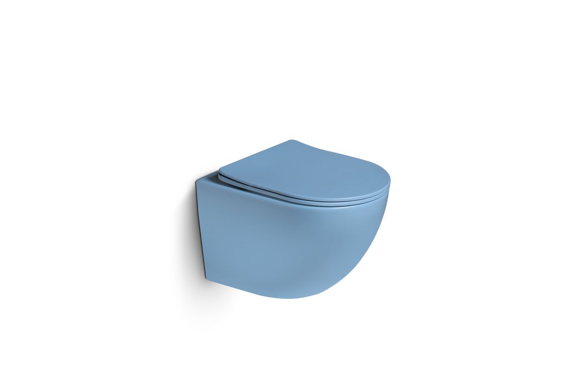 Унитаз подвесной SantiLine SL-5105 цвет голубой с сиденьем микролифт безободковый смыв воронка-водоворот