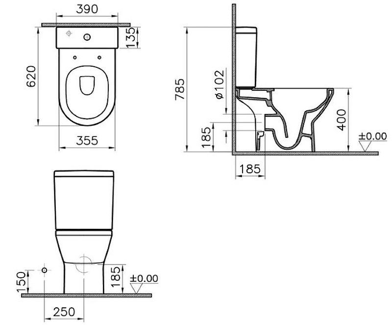 —Унитаз напольный с бачком Vitra Integra Round 9833B003-7206 белый с сиденьем микролифт безободковый