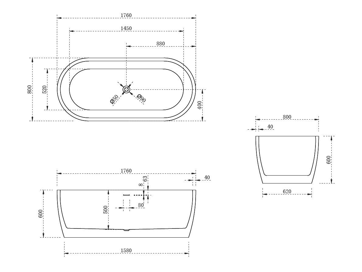 Ванна акриловая Abber AB9219 175х80 отдельностоящая овальная с каркасом