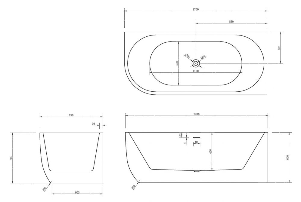 —Ванна акриловая Abber AB9315 R 170х75 пристенная асимметричная с каркасом