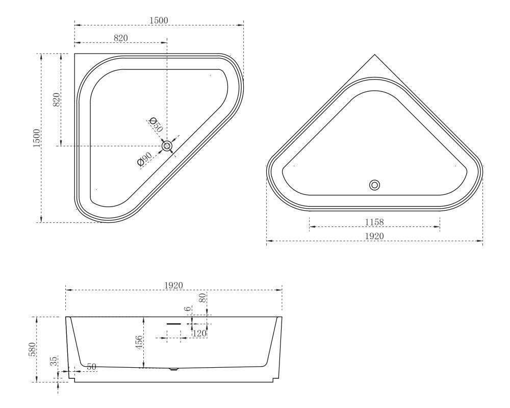 —Ванна акриловая Abber AB9446MW 150х150 угловая четверть круга с каркасом