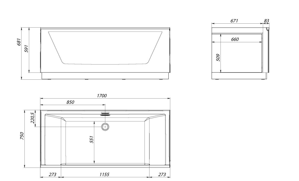 —Ванна акриловая Aima Design NEO 01нео1775с1с 170х75 отдельностоящая прямоугольная с каркасом