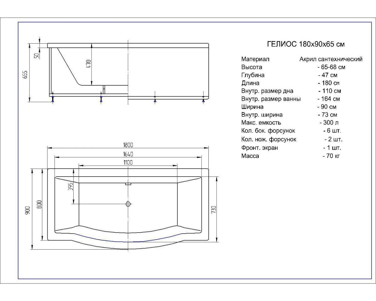 Ванна Aquatek Гелиос изготовлена из 100% акрилового листа толщиной 4 мм. Дно акриловой ванны Гелиос дополнительно усилено толстым листом ДСП. Ванну Гелиос Вы узнаете из сотни других ванн по оригинальному дизайну. Сочетание прямых линий и изогнутой фронтальной части ванны Гелиос будет смотреться эффектно в ванной комнате любых размеров.