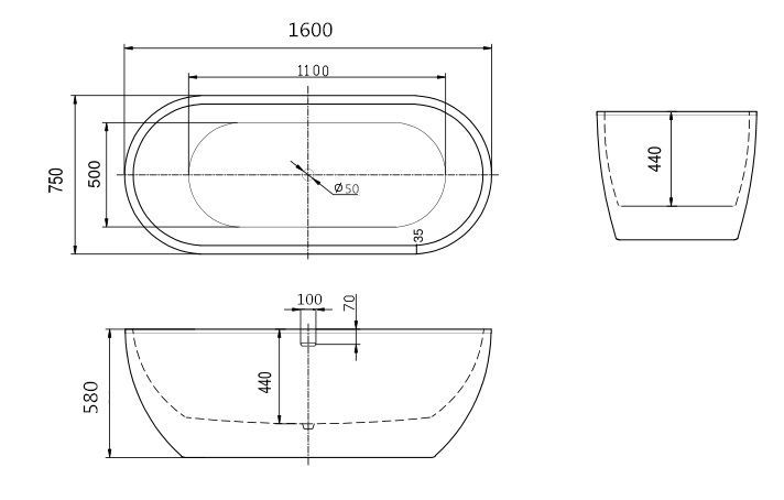 Ванна акриловая Art&Max AM-218-1600-750 160х75 отдельностоящая овальная