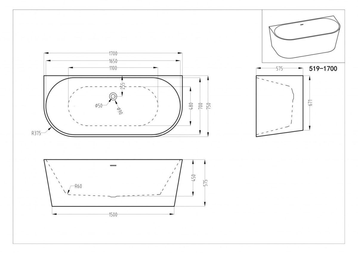 —Ванна акриловая Art&Max AM-519-1700-750 170х75 пристенная овальная