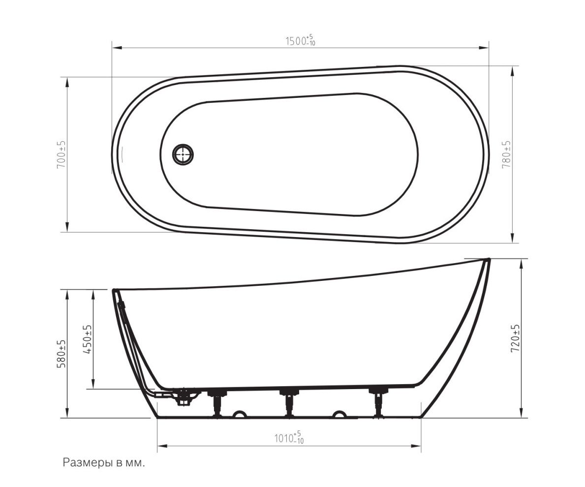 —Ванна акриловая Art&Max Tito AM-TITO-1500-780 150х80 отдельностоящая овальная