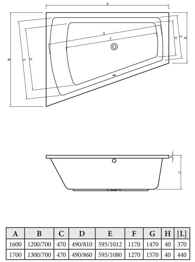 —Ванна акриловая C-Bath CBA00502R 170х70 пристенная асимметричная