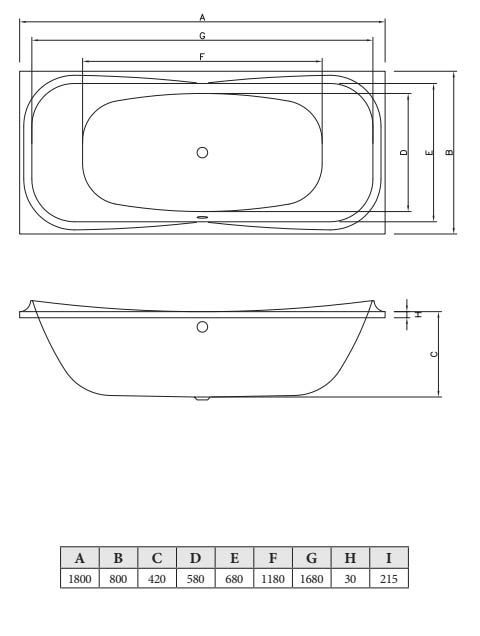 —Ванна акриловая C-Bath CBQ013001 180х80 пристенная прямоугольная