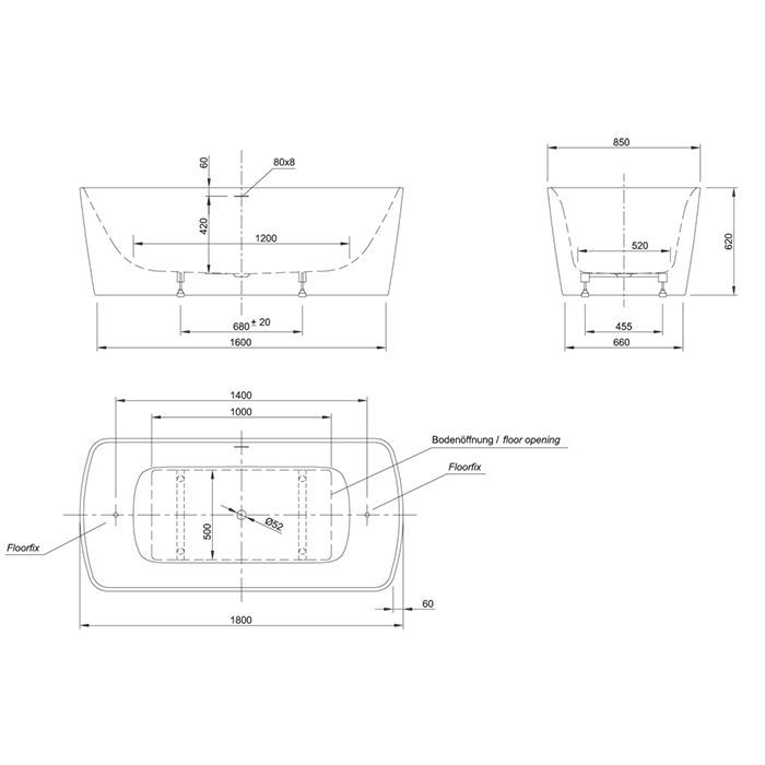 Ванна акриловая Knief Cosy 0100-279-06 180х85 встраиваемая прямоугольная
