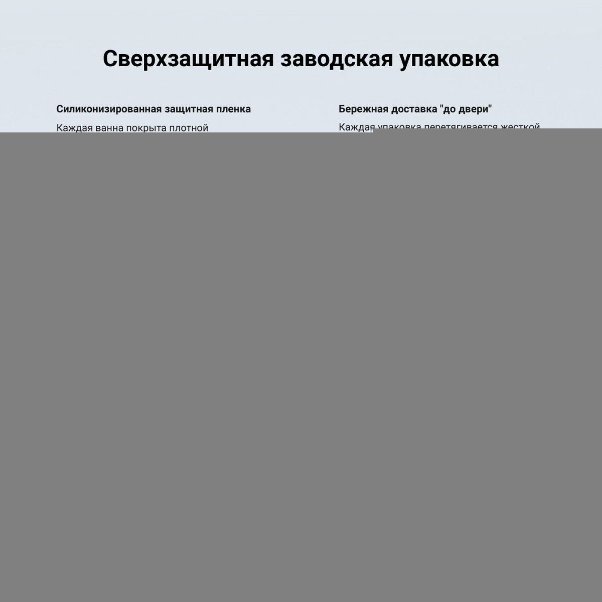 На акриле не накапливается грязь, не развиваются бактерии, ванна не желтеет и сохраняет равномерный глянцевый блеск. Ванны не подвержены истиранию, выцветанию и воздействию ультрафиолета, устойчивы к царапинам и жесткой воде. Каждое изделие проходит многоступенчатую проверку качества на геометрию и надежность.