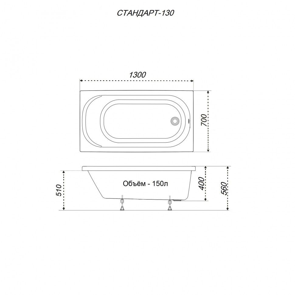 —Ванна акриловая Тритон Стандарт Н0000099326 130х70 пристенная прямоугольная без ножек