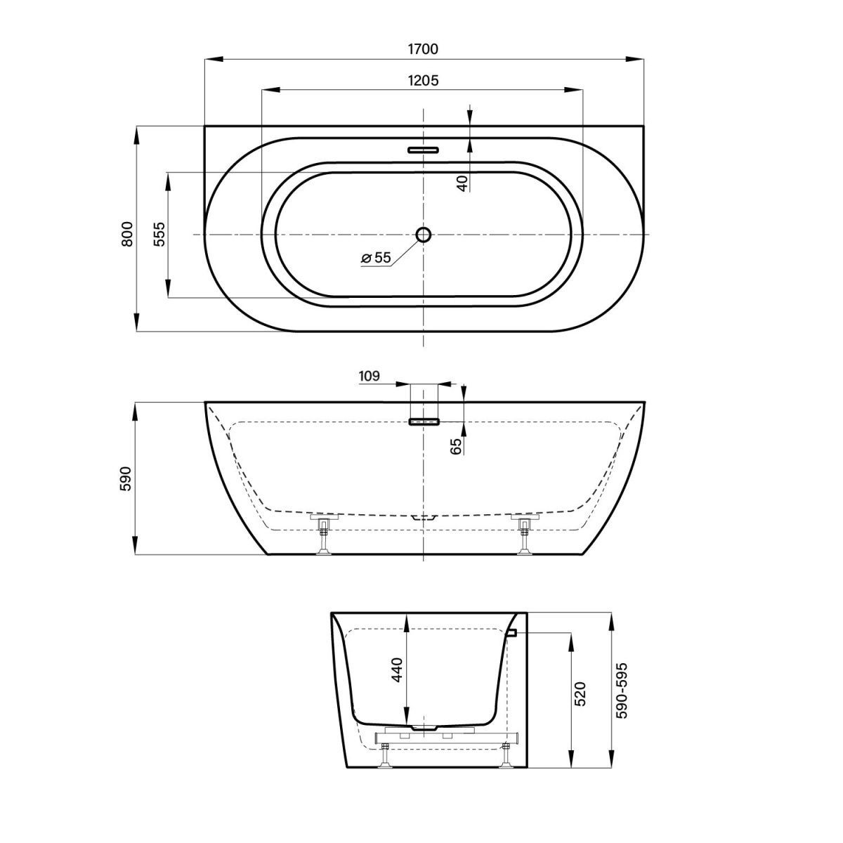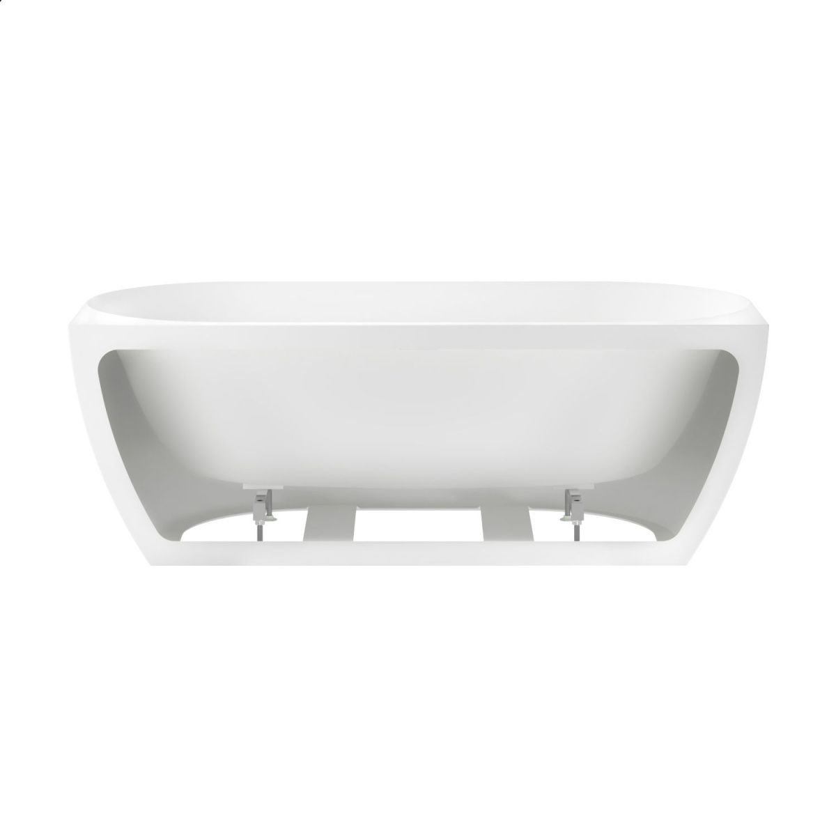 Пристенная акриловая ванна с несъемным экраном представлена длиной 170 см с увеличенной шириной купели 80 см. Плавные изгибы и отсутствие внешних острых углов придают изделию визуальную легкость и безопасность использования. Эргономичная форма с легким наклоном стенок обеспечивает деликатную поддержку спины. Цельная конструкция с панелью и плотное примыкание бортика к стене предотвращают попадание брызг и мелких предметов за пределы чаши.