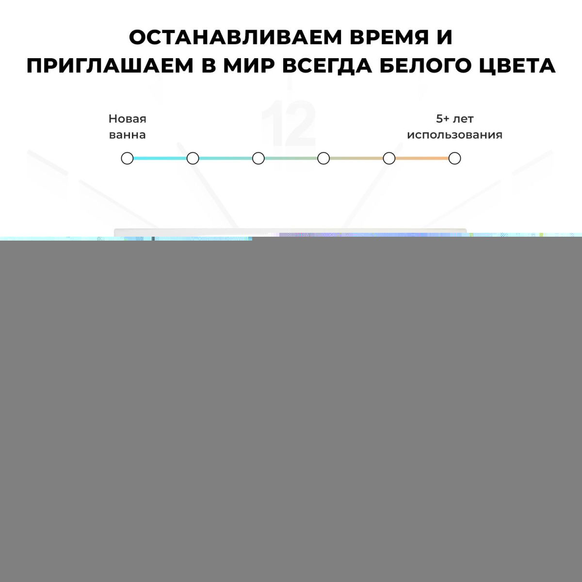 Основа ванн из литьевого акрила — жесткий 5 мм лист полиметилметакрилата (ПММА), полученный из жидкого мономера методом полимеризации. Высокая плотность материала и отсутствие микропор гарантируют гигиеничность ванны и легкий уход без специальных средств. Повышенная стойкость к истиранию, выцветанию и желтизне сохранит эстетичный внешний вид изделия.