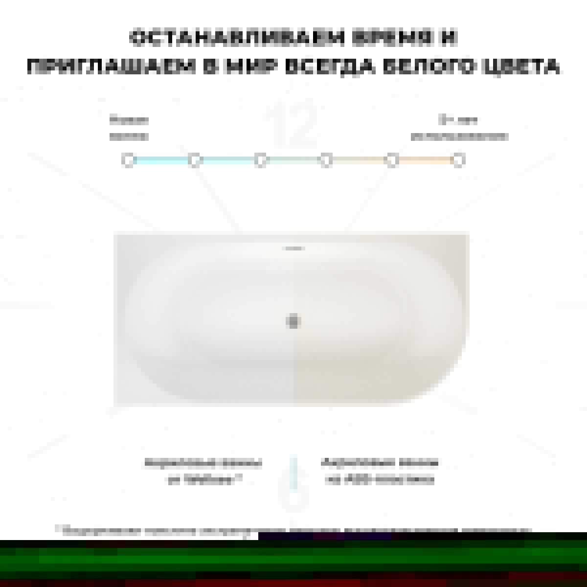 Основа ванн из литьевого акрила — жесткий 5 мм лист полиметилметакрилата (ПММА), полученный из жидкого мономера методом полимеризации. Высокая плотность материала и отсутствие микропор гарантируют гигиеничность ванны и легкий уход без специальных средств. Повышенная стойкость к истиранию, выцветанию и желтизне сохранит эстетичный внешний вид изделия.
