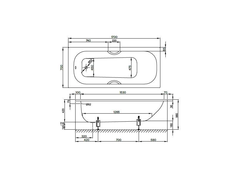 BETTEFORM Ванна встраиваемая с покрытием антислип - AS  и шумоизоляцией - AD, размер 170x70x42 см, цвет белый. Ножки и слив-перелив приобретаются отдельно.