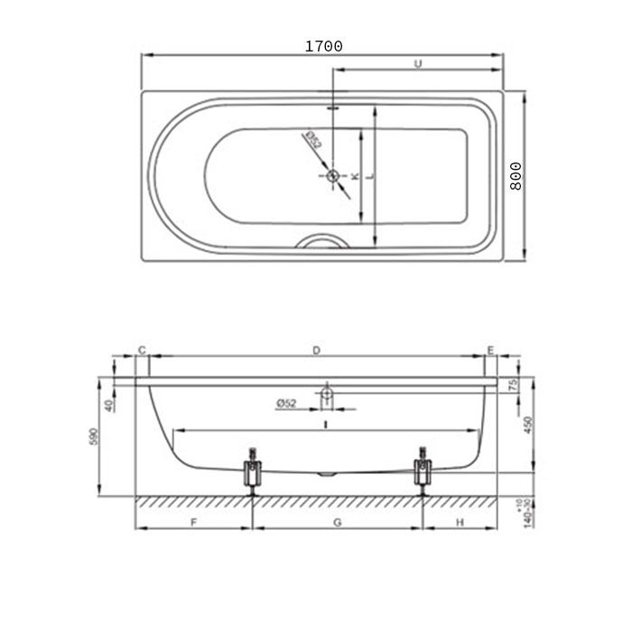 —Ванна стальная Bette Ocean 8865-000 PLUS, AR 170х80 встраиваемая прямоугольная без ножек