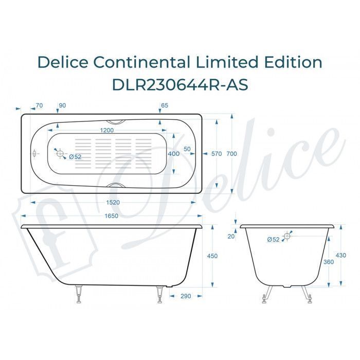 Delice Continental Limited Edition серия Elite в размере 165х70 см производится с ручками, без ручек, с антискользящим покрытием и с гладким дном.