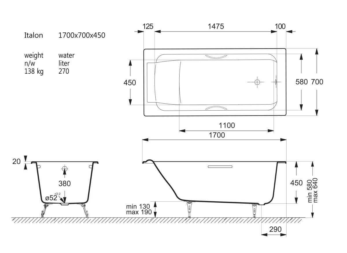 достоинством при стандартных размерах ванны.