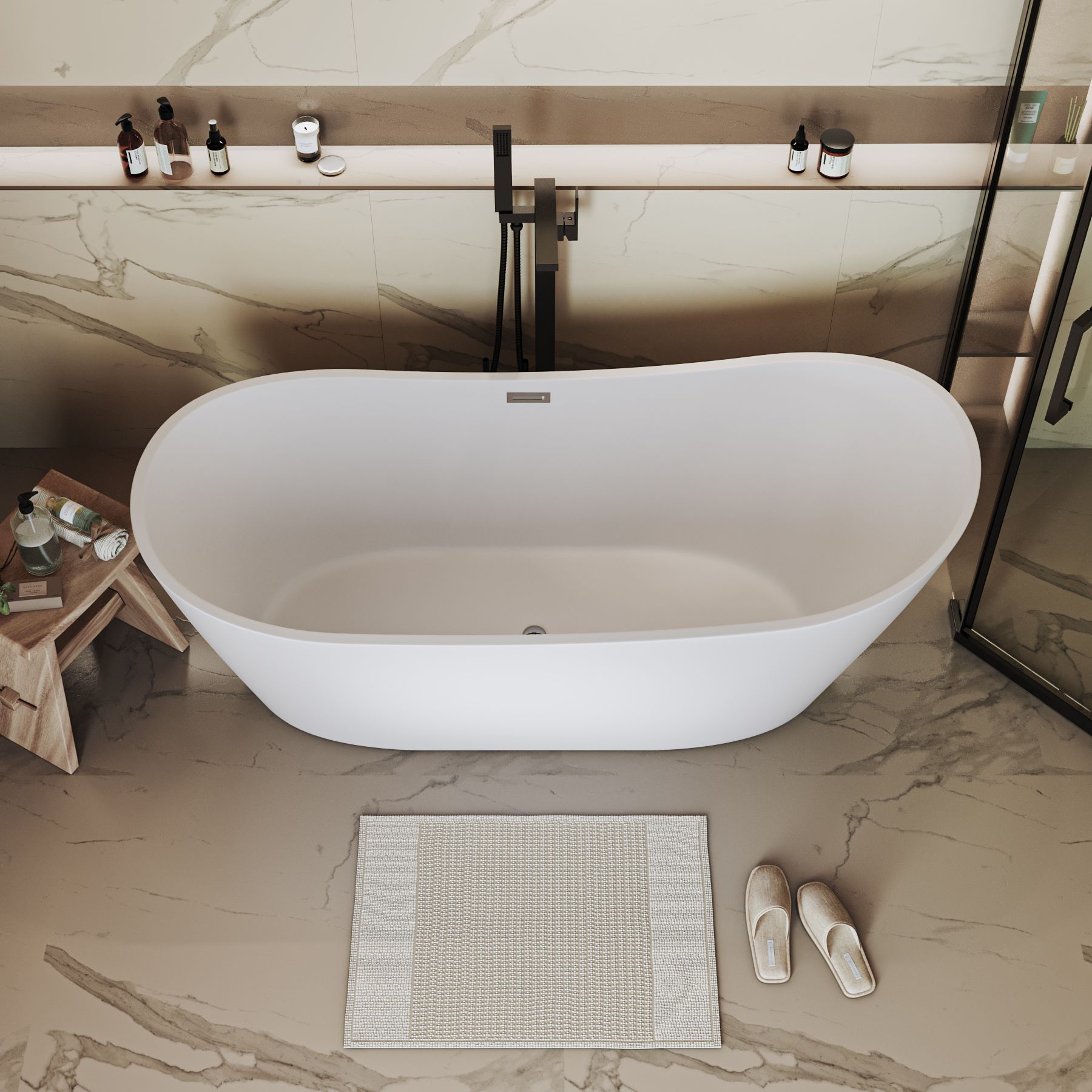 Эта отдельностоящая ванна сочетает в себе функциональность, надежность и эстетическую привлекательность, создавая идеальное пространство для релаксации и ухода за собой в вашей ванной комнате.