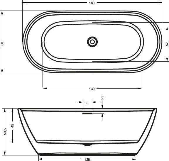 Ванна акриловая Riho INSPIRE FS B085001005 180х80 пристенная овальная с ножками