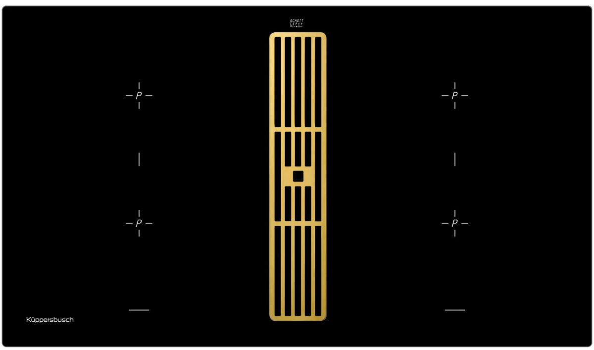 Индукционная варочная панель с вытяжкой Kuppersbusch KMI 9850.0 SR Gold представляет собой уникальное сочетание элегантного дизайна и передовых технологий. Произведенная в Германии, эта модель обладает превосходным качеством и надежностью, подтвержденной 24-месячной гарантией от производителя. Варочная панель выполнена в строгом черном цвете, который идеально впишется в любой интерьер кухни. Материал панели конфорок - стеклокерамика, обеспечивающая высокую прочность и долговечность. Безрамочная обработка края придает модели современный и стильный вид. Основной особенностью этой модели является встроенная вытяжка, которая обеспечивает эффективное удаление запахов и пара при приготовлении пищи. Система имеет четыре ступени мощности и интенсивный режим, максимальная производительность которого достигает 620 м3/ч. Минимальный и максимальный уровни шума составляют 45 и 68 дБ соответственно.