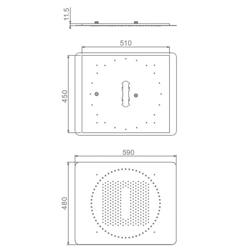 Тропический (верхний) душ Raglo R452.03. Цвет хром. Материал нержавеющая сталь. Форма прямоугольная. Размер душа 590*480 мм. 2 режима лейки. Монтаж на потолок.