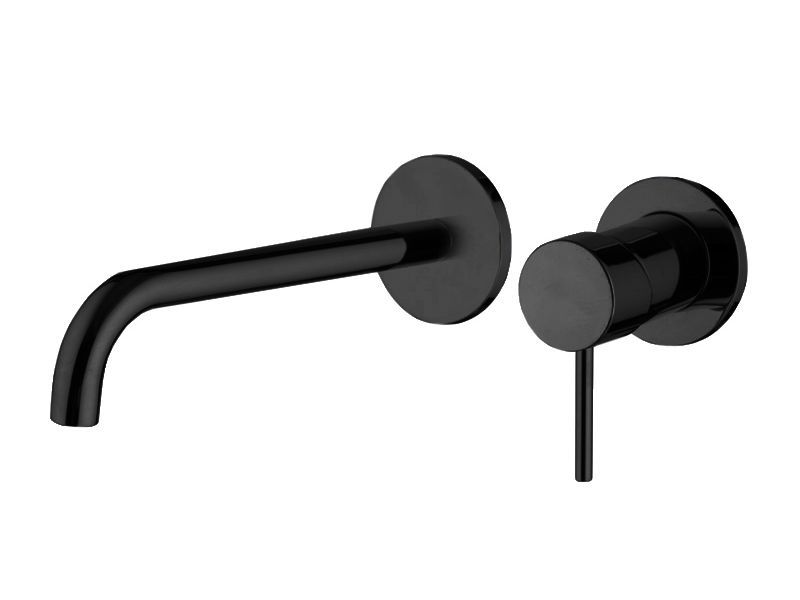 Внешняя часть смесителя для раковины настенного монтажа FIMA CARLO FRATTINI SPILLO UP F3051WLX9NS, излив 200мм, донный клапан click-clack 1``1/4 с переливом, цвет черный матовый. Встроенная часть арт. F3600W приобретается отдельно.