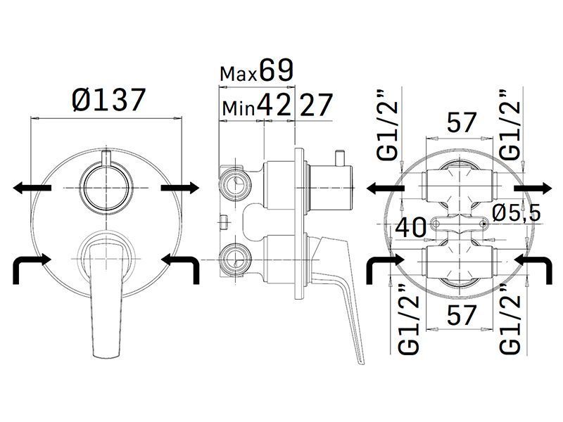 —Смеситель для душа Mamoli Spartaco 2920PE009001 встраиваемый в стену хром