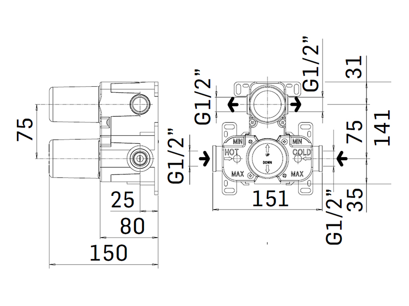—Внутренняя часть встраиваемого термостического смесителя для душа Mamoli Euclide 271000000027