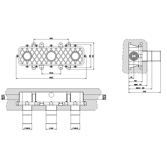 —Внутренняя часть встраиваемого двухвентильного смесителя Gessi 45089#031