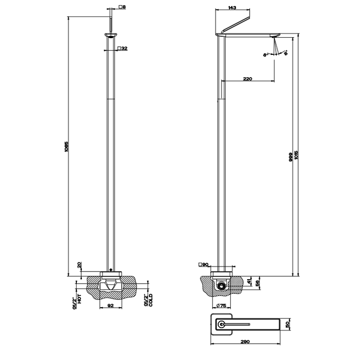 —Встраиваемая часть напольного смесителя для раковины Gessi 20699#031