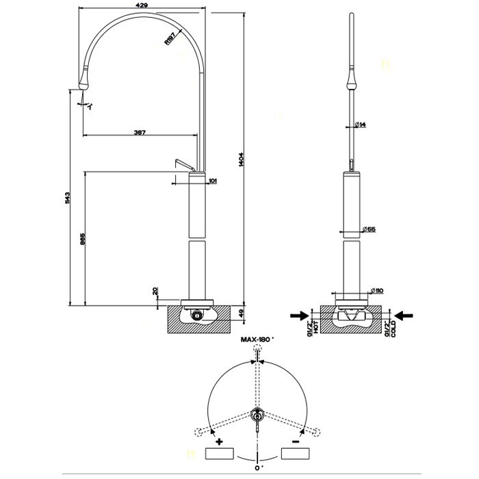 —Встраиваемая часть напольного смесителя Gessi 33629#031