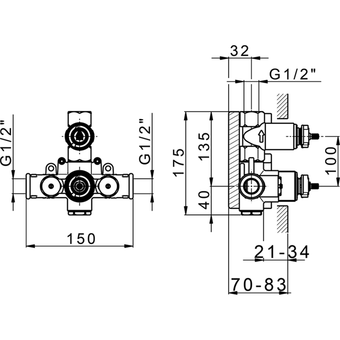—Встраиваемая часть термостатического смесителя 1/2" с запорным вентилем Cisal ZA00930004