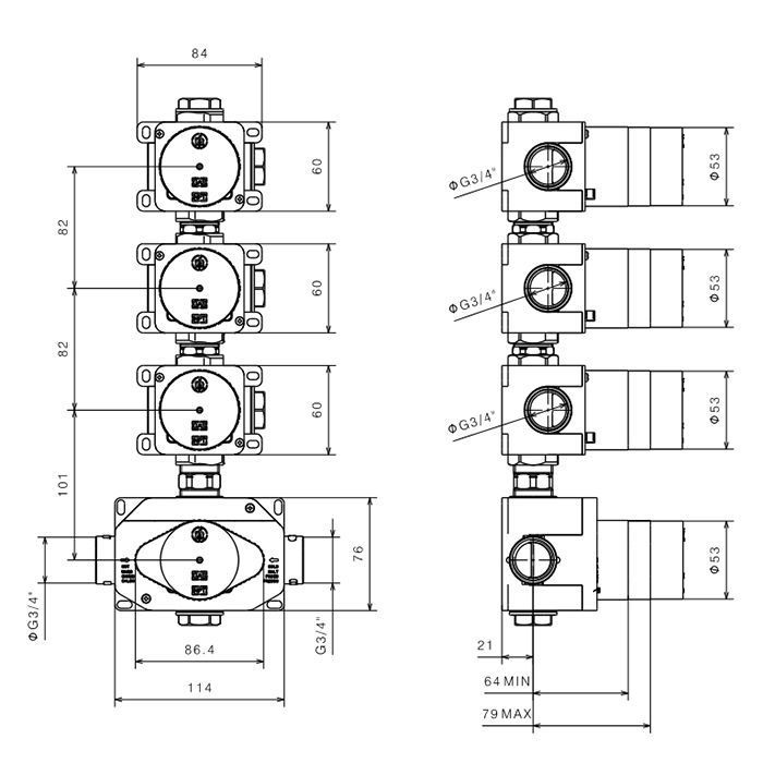 —Встраиваемая часть термостатического смесителя 3/4"на 3 источника Newform 27877.00.000