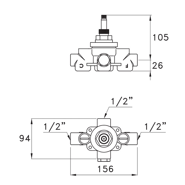 —Встраиваемая часть термостатического смесителя для душа Stella UN 06000 0000