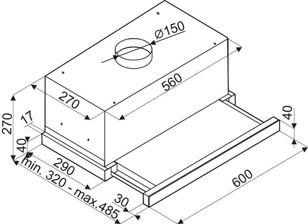- Габариты прибора без воздуховода (ВхШхГ): 270х600х300 мм