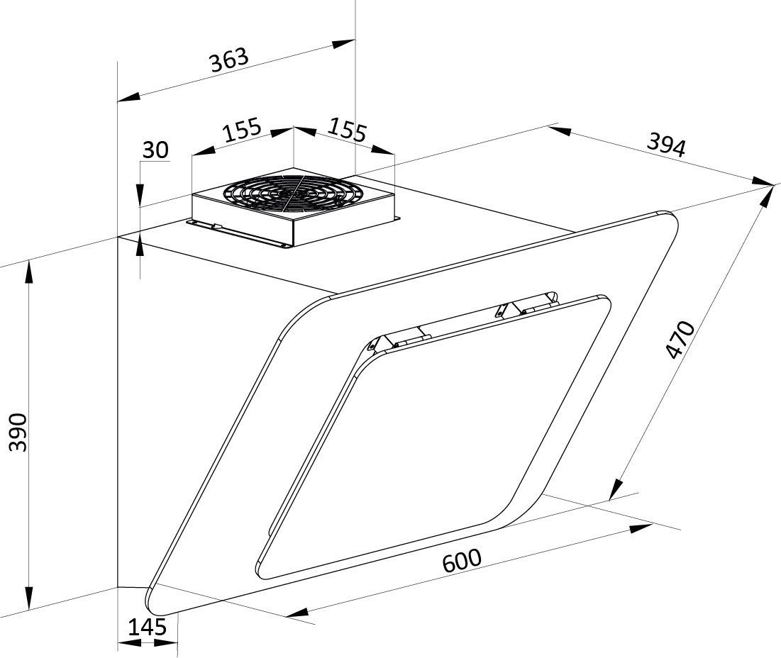 - Габариты прибора без воздуховода (ВхШхГ): 390х600х394 мм