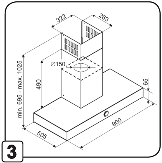- Габариты прибора (ВхШхГ): 650-1025х900х505 мм