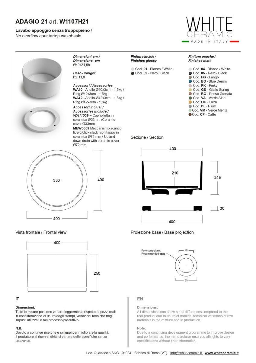 —Раковина керамическая White Ceramic Adagio W1107H2101 40х40 накладная цвет белый