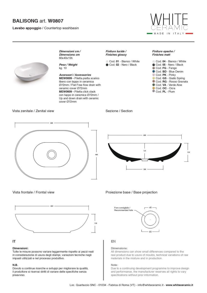 —Раковина керамическая White Ceramic Balisong W0807SET01/Balisong 60х40 накладная цвет белый