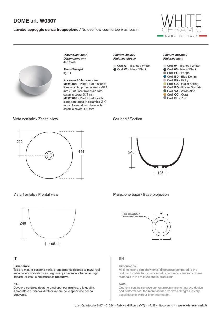 Раковина керамическая White Ceramic Dome W0307CF 40х40 накладная цвет коричневый