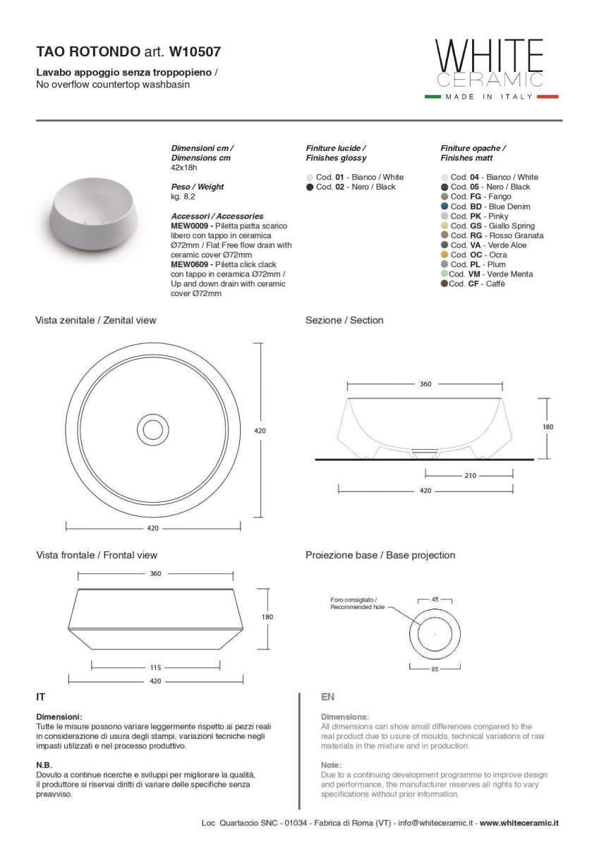 —Раковина керамическая White Ceramic Tao W1050701 40х40 накладная цвет белый