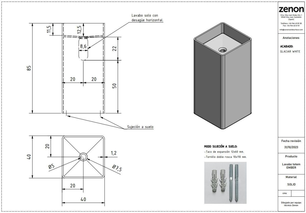 Раковина из искусственного камня Zenon Ember 4000.000.000.000.42153 40х40 напольная цвет белый