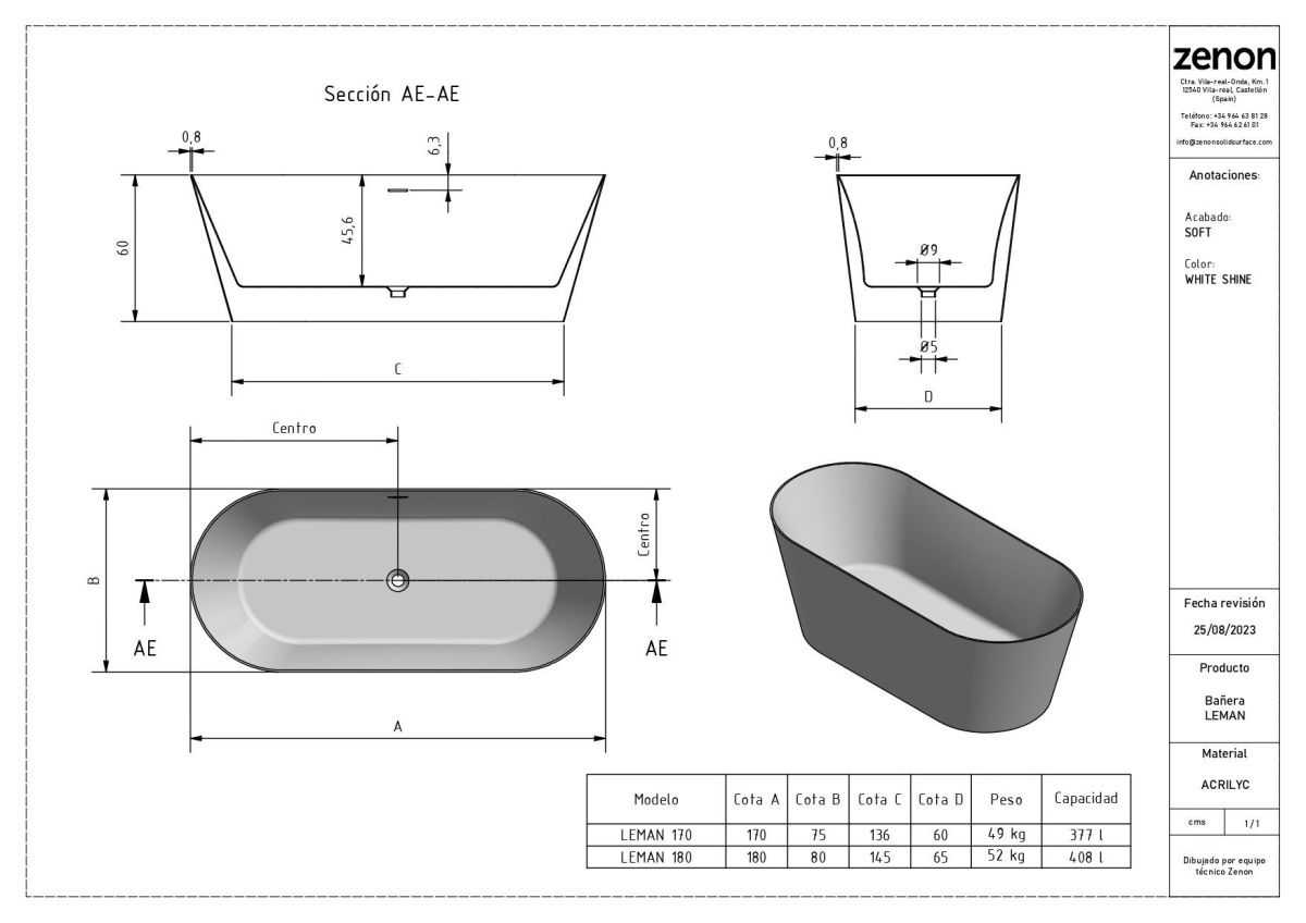 —Ванна акриловая Zenon Leman 4000.000.000.000.40948 180х80 отдельностоящая овальная