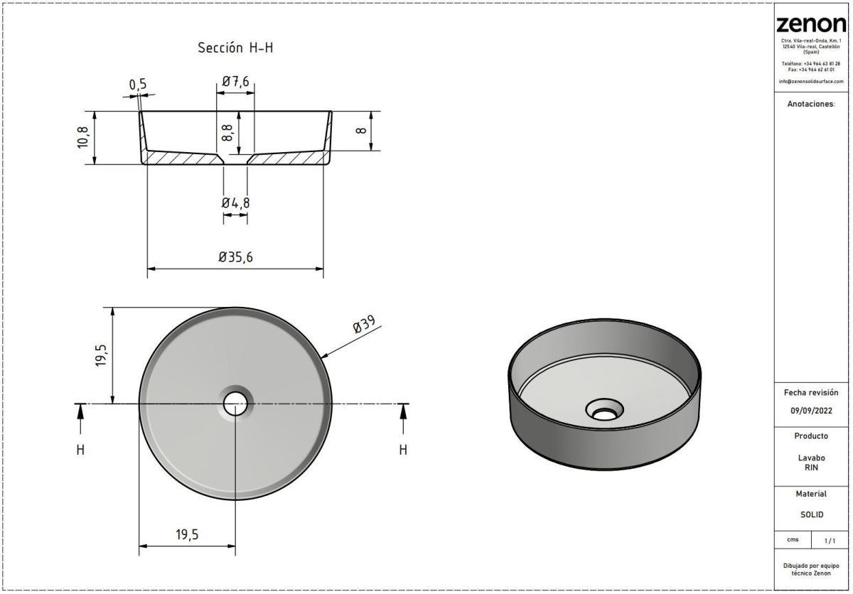 —Раковина из искусственного камня Zenon Rin 4000.000.000.000.09349 40х40 накладная цвет белый