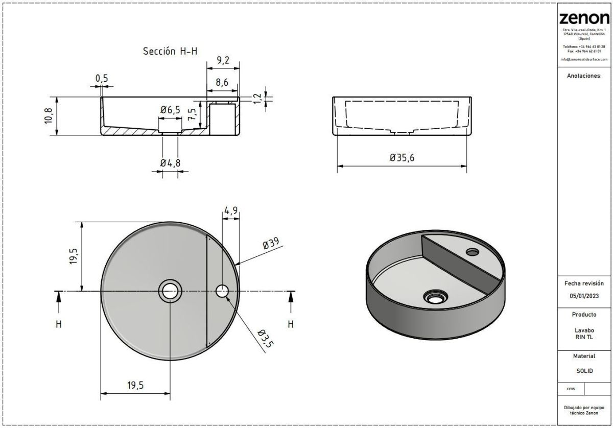 —Раковина из искусственного камня Zenon Rin 4000.000.000.000.23362 40х40 накладная цвет белый