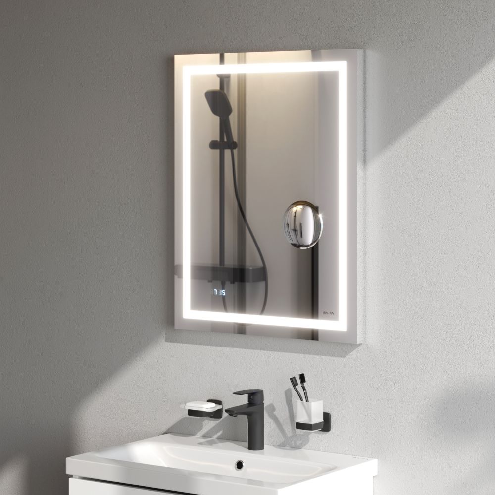 Скрытый механический выключатель сохраняет эстетическую целостность дизайна зеркала а также гарантирует отсутствие отпечатков пальцев на зеркальном полотне. Зеркальное полотно премиального качества производства Бельгии. Гарантия 3 года.