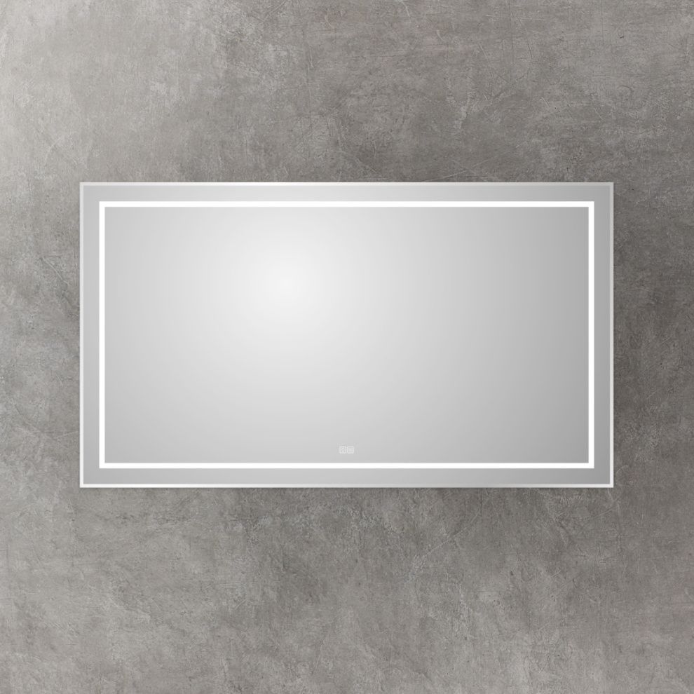 Зеркало в алюминиевой раме с встроенным светильником, сенсорным выключателем и подогревом.