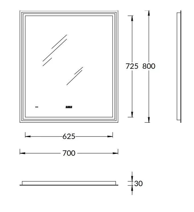 Прямоугольное зеркало TECNO готово стать эстетическим центром ванной комнаты благодаря сенсорной подсветке по всему периметру.